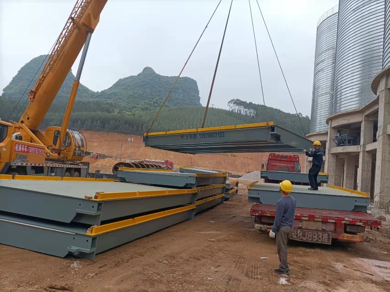 柳州特力汽車衡采用模塊化軸銷搭接,以便秤臺之間可以搭接互換,便于秤體現場安裝。限位采用縱向與橫向結合的方式,保證秤體縱向、橫向不移位。